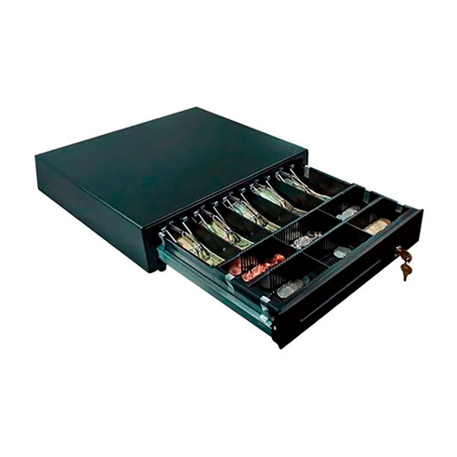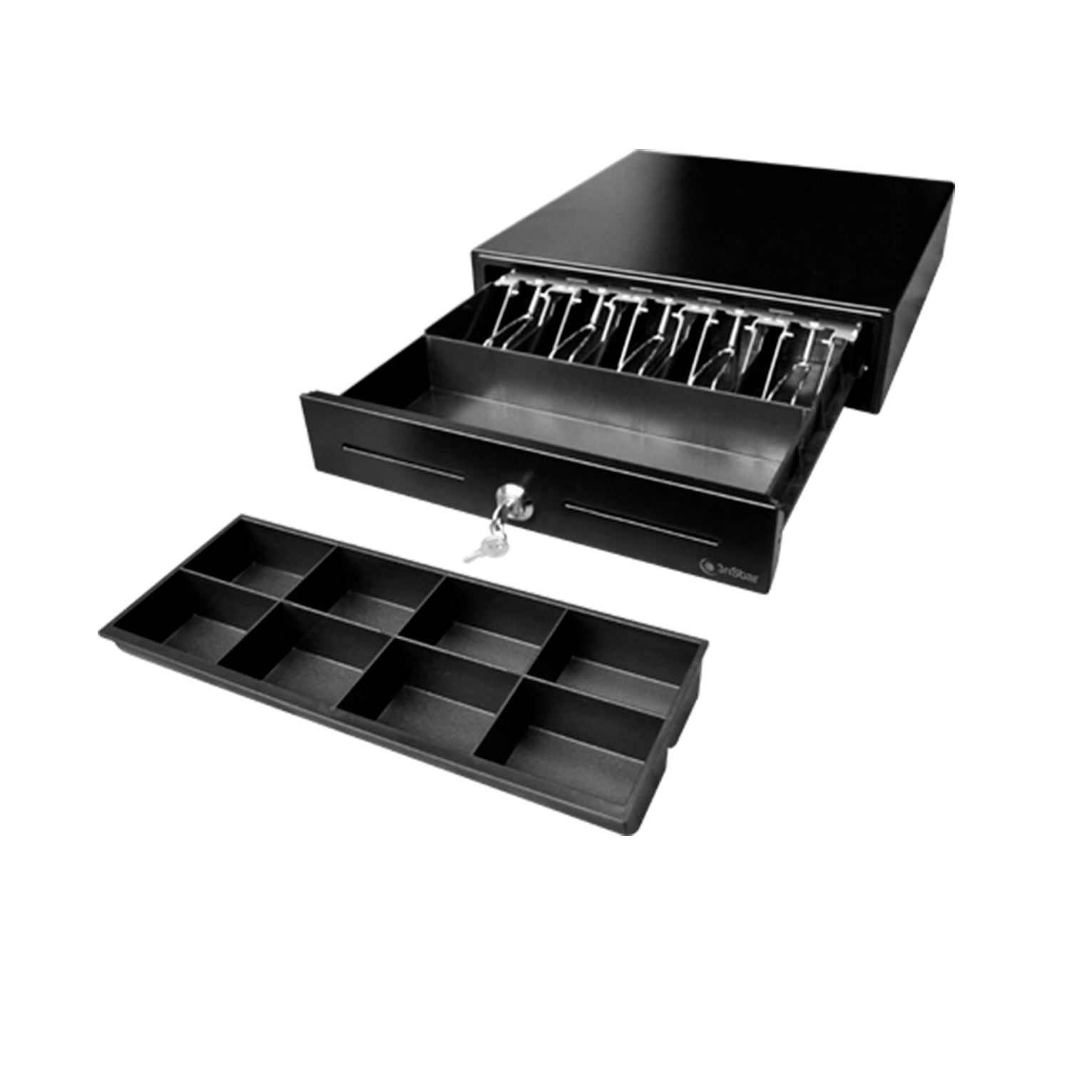 La gaveta CD350 de 3nStar constituye una solución robusta y segura. La integración con impresoras de recibos es sumamente sencilla y el desempeño mecánico excelente. Gracias a la cubierta para la bandeja (opcional) la CD350 es ideal para cualquier negocio en la que la seguridad del dinero en efectivo sea un elemento vital.