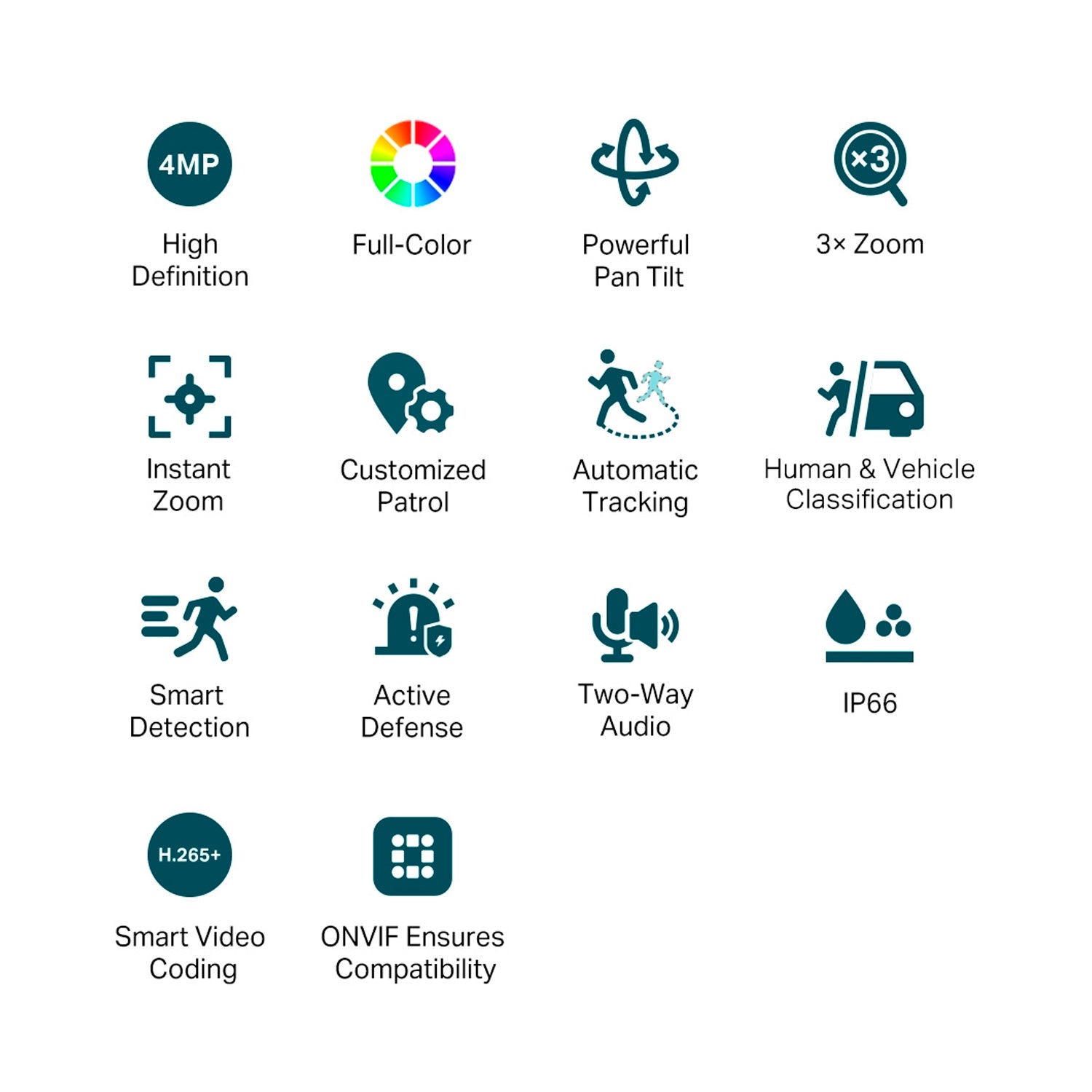 Supervise los detalles claros y coloridos las 24 horas, incluso en la noche más oscura. La cámara a todo color VIGI proporciona resoluciones máximas de 4MP y garantiza un monitoreo colorido con su lente de gran apertura, sensor de alta sensibilidad y luces complementarias adjuntas.