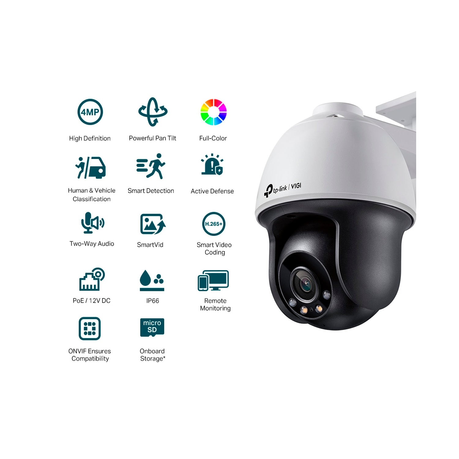 Cámara De Seguridad Tp-link Vigi C540(4mm) 4mp Full-color PoE IP66 + SD Adata 128GB